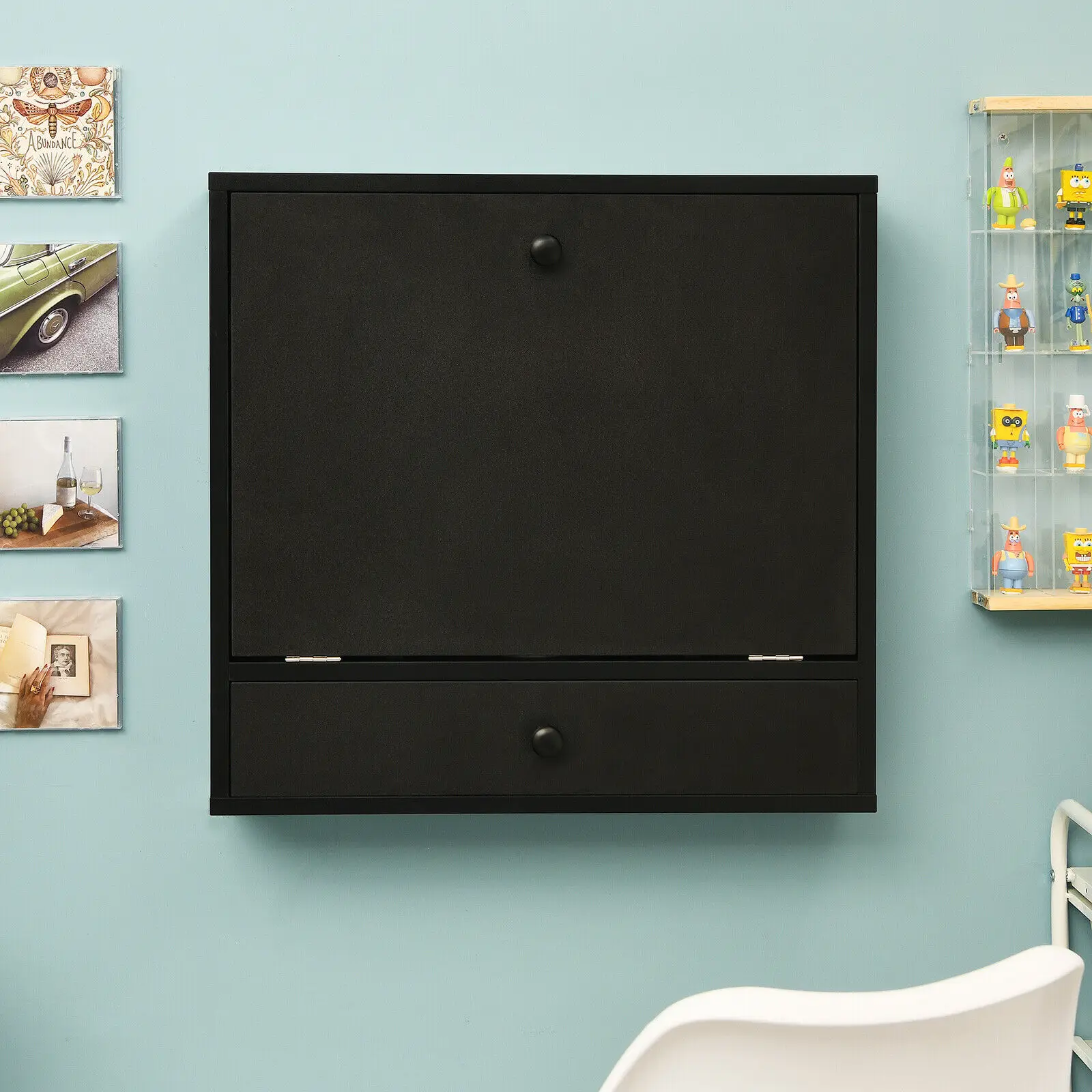 Our wall-mounted laptop desk will be a perfect solution for your limited living space. Featuring a foldable desktop, the floating desk with flexible wall-mounted heights can serve as a writing desk, a storage cabinet and a vanity table in your bedroom, living room, study room. What’s more, with six storage partitions and one bottom drawer, this multifunctional unit will keep all your essentials in order and make them available while you are working. For your comfort and safety, this desk is built tough and strong with thick boards, premium pneumatic springs, metal hinges and stable hangers.