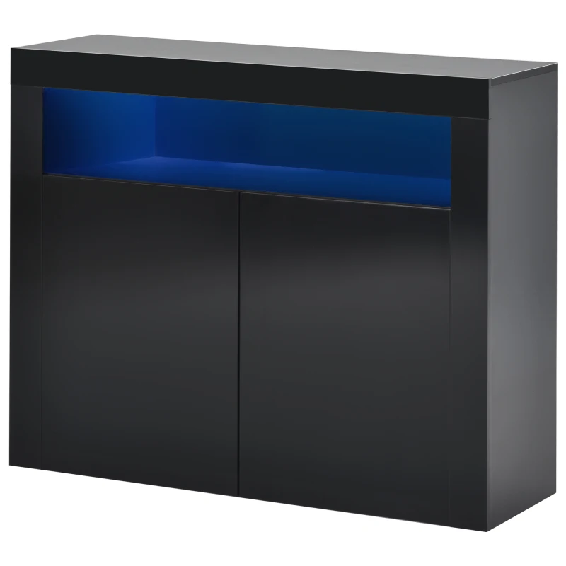 2.【High Quality】This wooden sideboard is made of 15mm P2 particleboard, the LED unit cupboard cabinet is high gloss effect finish to the front of the unit (including doors and front panels); the rest of the body in a matt finish, contemporary and stylish. 2 internal adjustable shelves with 3 optional heights can meet all your requirements, also you can choose to use it without shelves. It can accommodate most decorations and everyday things in your daily life. For instance, flat and smooth tabletop is a great place your favorite vase or books.