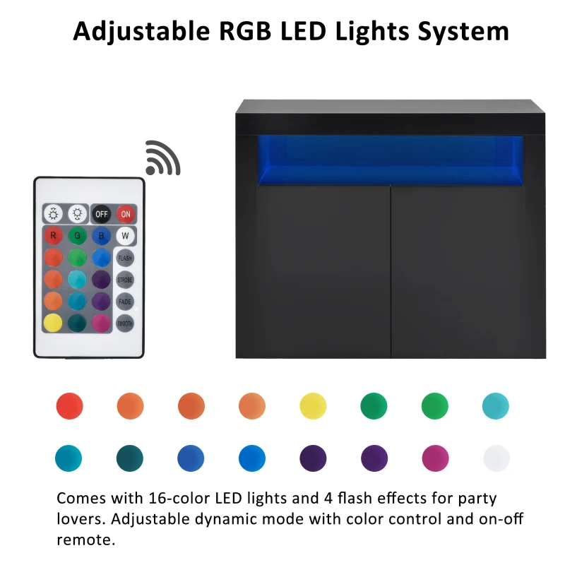 3.【Décor Your Space】Modern minimalist LED light cupboard cabinet, high-end luxury, make life more layered. It has 16 state lighting colors and 4 lighting modes. You can choose from 7 color jumpy change, all fade out &fade in, 7color fade change and 3 base color jumpy to enhance the fun in your Livingroom. A detailed instruction is placed inside the controller box, if you didn’t find it, it always be welcome to contact us.